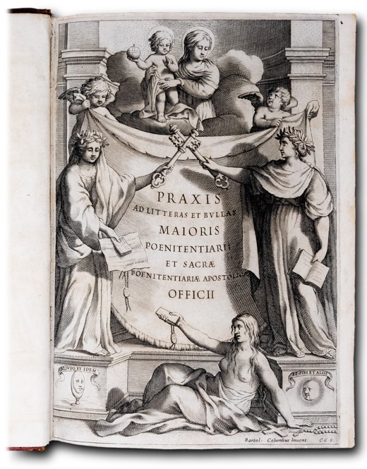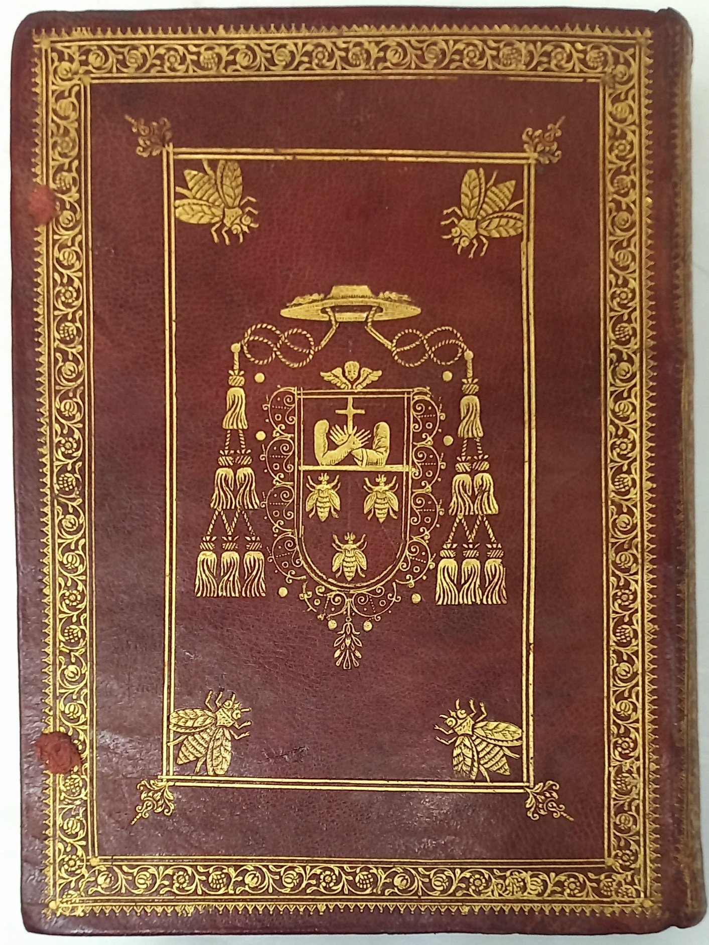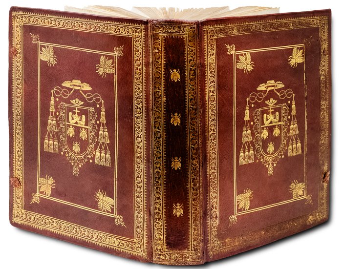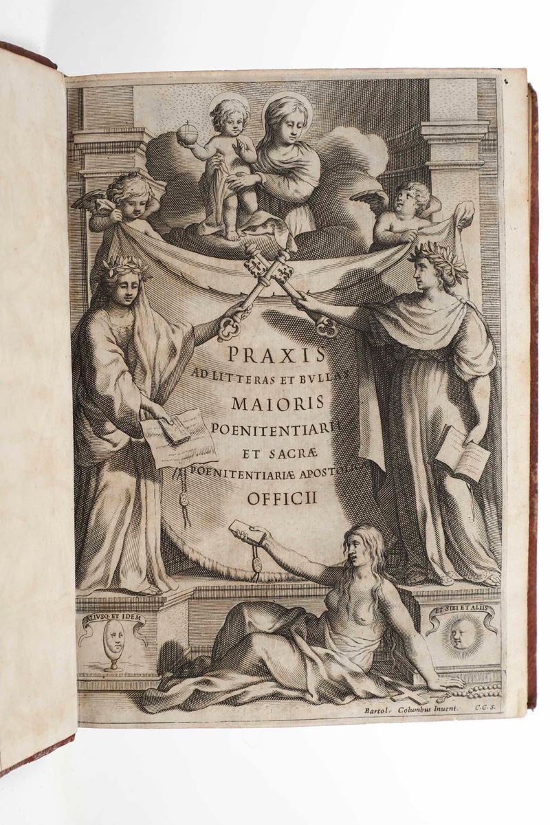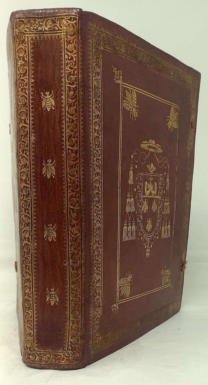>In-4, (mm 237x170), pp. 20 n.n., 640, 74 n.n. contenenti Errata, Indice e Registro, un f. bianco. Bell'antiporta incisa in rame da C.C.S. (Camillo Congio) su disegno di Bartolomeo Colombo. Al frontespizio e al verso dell'ultimo foglio stemma della Compagnia di Gesù, della quale l'autore (1587-1657) faceva parte; iniziali e fregi xilografici, testo su 2 colonne. Magnifica rilegatura coeva in pieno marocchino alle armi della famiglia Barberini, con ai piatti ricchi fregi dorati e bordura a due filetti con quattro grandi api accantonate. Al centro grande stemma del Cardinale Antonio Marcello Barberini (1569-1646), dedicatario dell'opera, che si presenta così bipartito: nella porzione superiore il simbolo dell'Arciconfraternita delle Sacre Stimmate di San Francesco (due avambracci, con le stimmate in evidenza, che incrociandosi reggono una croce); nella parte inferiore il classico stemma di Casa Barberini, ovvero le tre api d'oro. Il tutto è sormontato dal galero cardinalizio con le nappe. Il dorso liscio è ornato in maniera inusuale da altre quattro api, disposte in verticale entro larga cornice. Tracce di legacci e tagli dorati. L'opera è preceduta da un esclusivo privilegio per la pubblicazione, promulgato da Papa Urbano VIII, fratello del Barberini che era Penitenziere Maggiore. La Penitenzieria Apostolica è il supremo tribunale della Chiesa e regola le assoluzioni dalla Censura, il foro interno (che gestisce i casi di coscienza) e le indulgenze plenarie.