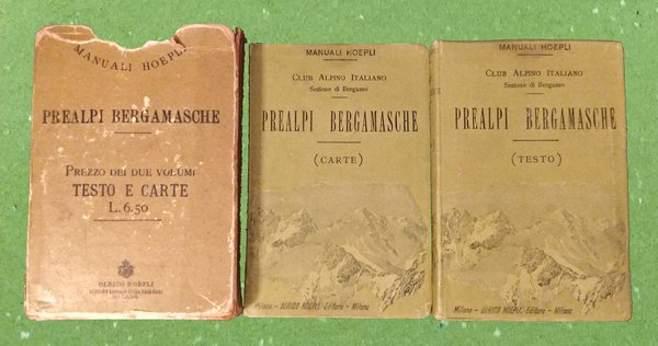 Cofanetto editoriale contente due volumi in 16°, primo volume di testo pagg. 241 più 64 pp. del catalogo dei manuali Hoepli, avente cartina a profilo geologico a colori posta come premessa al frontespizio e 15 tavole in b.n. fuori testo. Volume secondo contenente due carte topografiche a colori. Volumi completi, ottime condizioni.