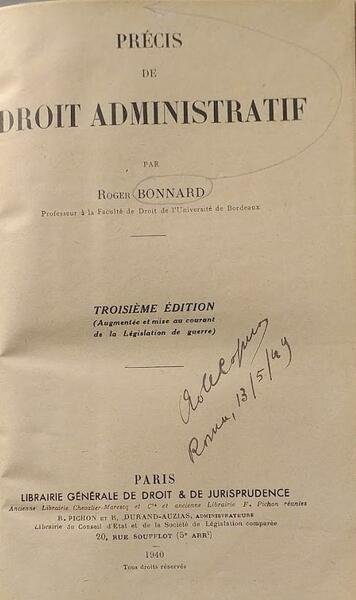 Paris, Librairie Générale de Droit & de Jurisprudence, 1940