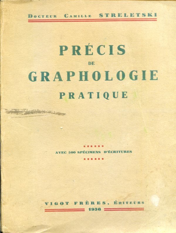 In-4°, pp. 378, (4), brossura editoriale. 500 specimen di scrittura intercalati n.t. Perfetto esemplare a fogli chiusi. Prima edizione di quest'ampio manuale grafologico. Lo Streletski (morto nel 1959), psichiatra e grafologo, fu assistente all'Hôpital Ste Anne di Parigi, dove conobbe Lacan.