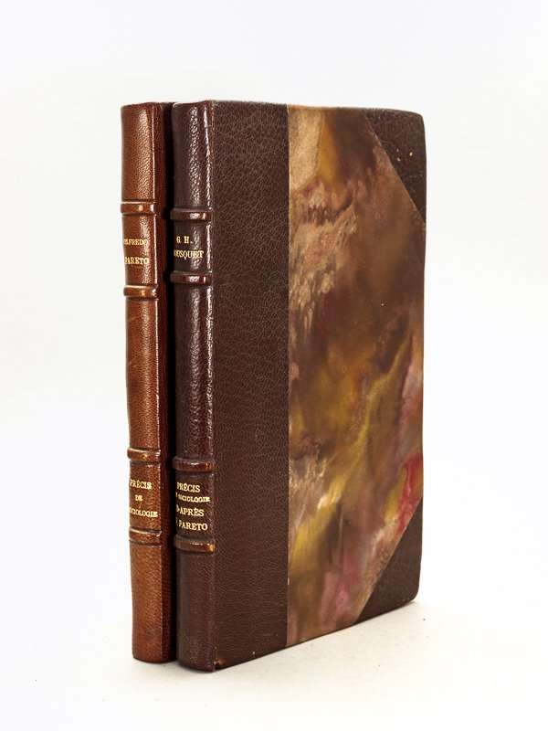 2 vol. in-8 reliure demi-chagrin maroquiné et demi maroquin à coins brun, dos à 5 nerfs, Payot, Paris, 1925, 207 pp. et Librairie Dalloz, Paris, 1971, 207 pp. Remarquable ensemble réunissant avec un bel exemplaire de la deuxième édition l'exemplaire corrigé pour l'offset utilisé par l'éditeur pour éditer la seconde édition. Bel ensemble (avec les corrections contrecollées sur de petites bandes de papier laissant accessible le texte d'origine)L'auteur a indiqué sur la couverture conservée : "Exemplaire dont j'avais fait don en 25 à Papa et Maman, et qui fut détruit pour l'offset de 1971 [.] recollé par les soins de Dalloz après offset". De la bibliothèque de l'auteur, qui fut un des grands serviteurs de la pensée de Pareto, avec lequel il entretint une correspondance.