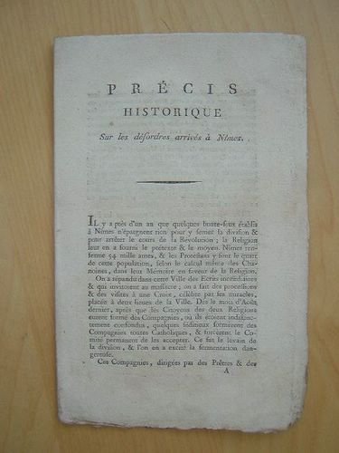 Précis historique sur les désordres arrivés à Nîmes. [ édition originale ]