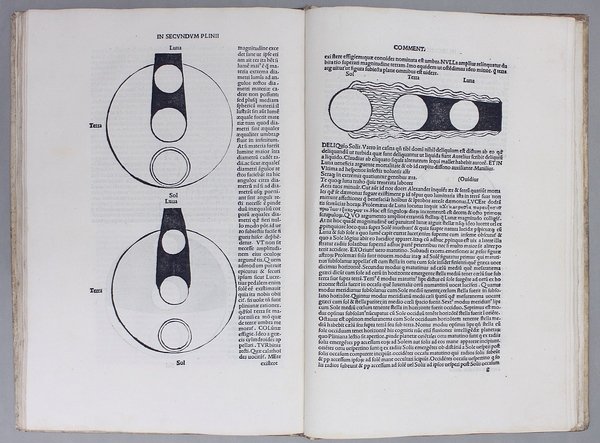 Prima edizione postuma di una raccolta di fondamentali interventi del celebre umanista piacentino su testi di astronomia, scienze e filosofia naturale dell’età classica. Il volume è illustrato da immagini cosmografiche e da schemi astrologici di grande impatto, incisi in legno lungo il testo, in parte su fondo nero.