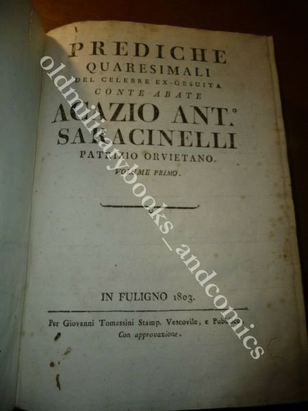 PREDICHE QUARESIMALI DEL CELEBRE EX-GESUITA CONTE ABATE ACAZIO ANT. SARACINELLI