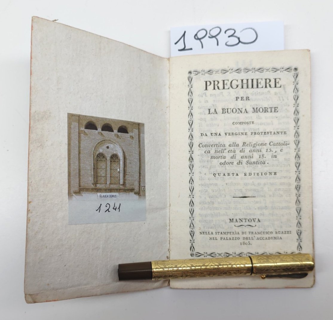 Preghiere per la buona morte composte da una vergine protestante Mantova 1805 4° ed.