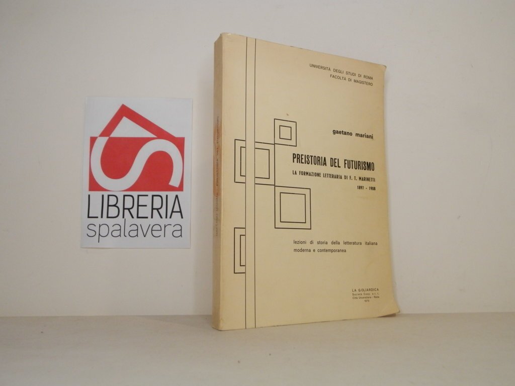 8°, 24 cm, pp. 319, brossura editoriale con titoli al piatto e al dorso. Leggero alone e macchioline alla brossura, strappetto al margine superiore del piatto posteriore, minimia ammaccatura alla cuffia superiore, peraltro interno fresco, volume ben conservato. La formazione letteraria di F. T. Marinetti. 1897 - 1908. Lezioni di storia della letteratura italiana moderna e contemporanea.. *** TUTTI I NOSTRI LIBRI SONO VISIBILI PREVIO CONTATTO MAIL O TELEFONO NELLA NUOVA SEDE DI MILANO: LIBRERIA COSMOPOLIS, VIA JOMMELLI, 22. ***