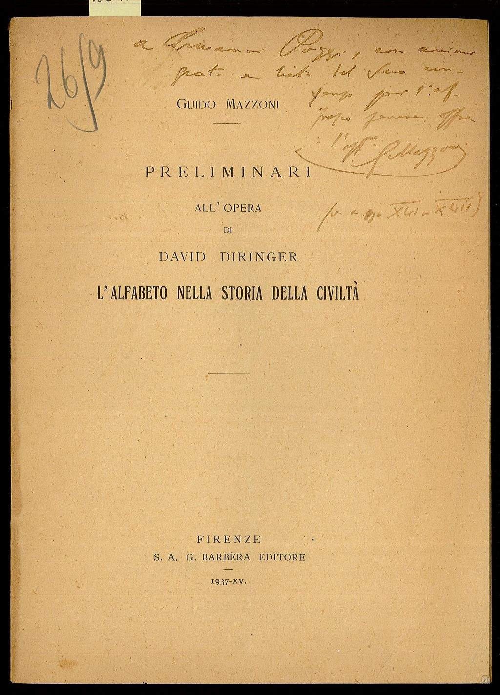Preliminari all’opera di David Diringer L’alfabeto nella storia della civiltà