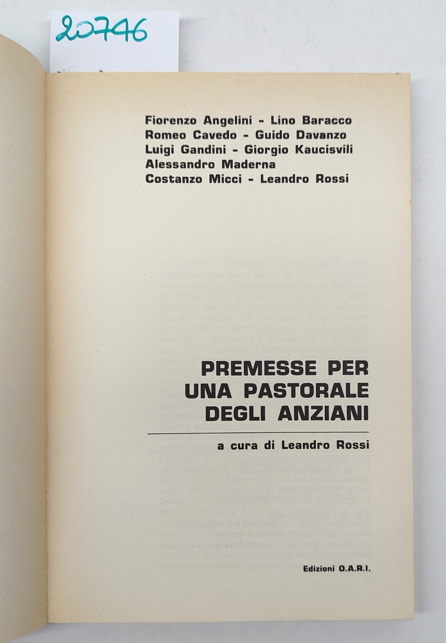 Premesse per una pastorale degli anziani edizioni O.A.R.I. 1972