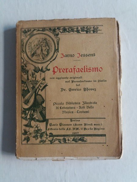 Brossura decorata, cm. 16,8 x 12,5, pp.88. Con illustrazioni fuori testo. Con aggiunte originali sul Prerafaelismo in italia di Enrico Thovez.