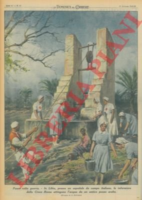 Presso un ospedale da campo italiano, in Libia, le infermiere della Croce Rossa attingono acqua da un pozzo arabo.