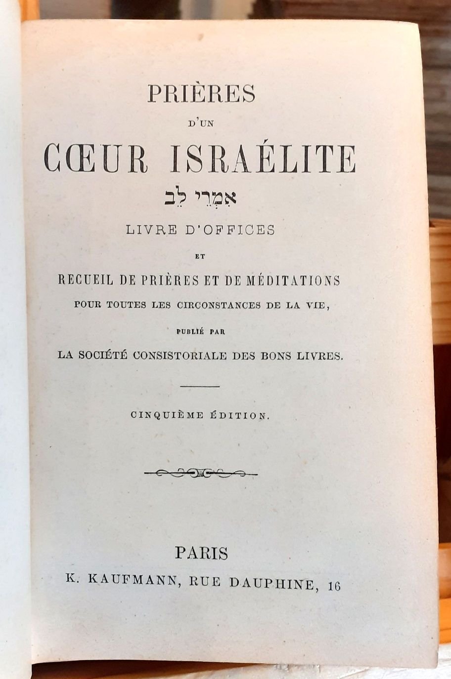 Prières d'un coeur israélite. Livre d'offices et recueil de prières et de méditations pour toutes les circonstances de la vie. Publiée par la Société Consistoriale des Bons Livre