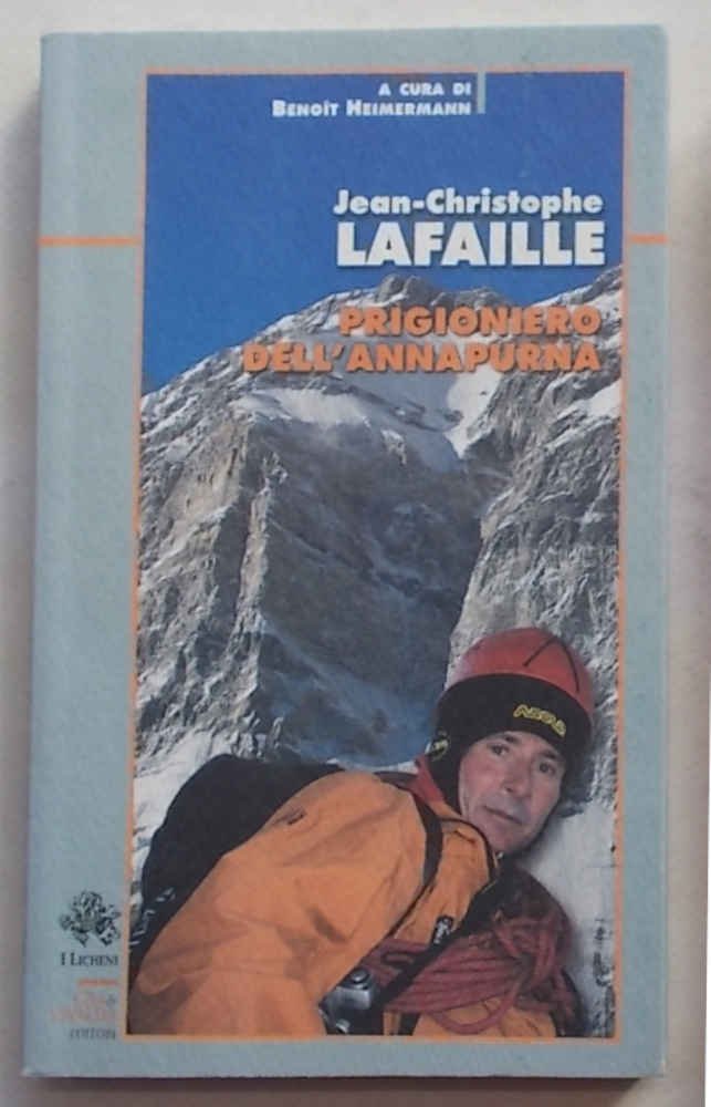 In 8° (cm. 20 x 12,5); pagg. 180; con 1 tavola doppia n.t.; leggera carton. originale figur. a colori. VG. ** Collana "I Licheni", 86. Con la collaborazione di Benoit Heimermann. "L'avvincente relzione tra un uomo e juna montagna (l'Annapurna), la faticosa ripresa, fisica e psicologiaca, dopo la morte del compagno, i rapporti difficili con l'ambiente alpinistico, i tentativi a vuoto dlele spedizioni. la volontà incrollabile di ritrovare se stesso attraverso un'ascensione."