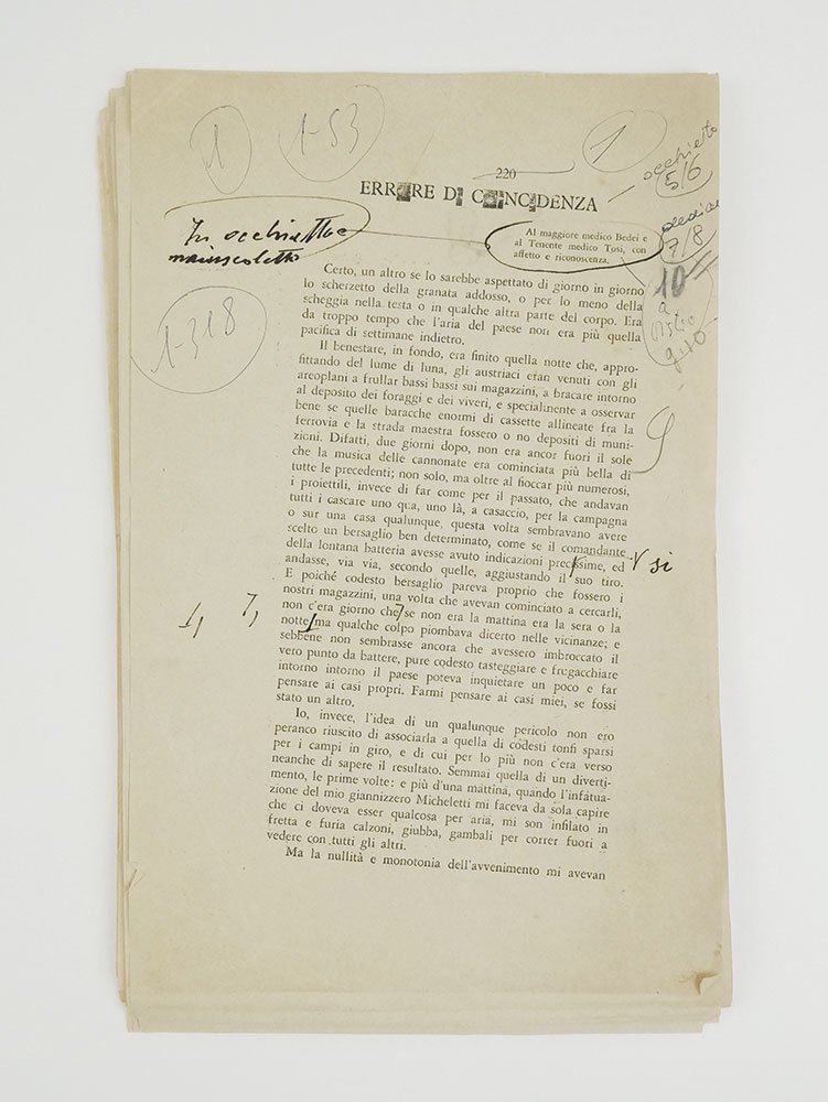 Prime bozze di «Opere», III [contiene: «Errore di coincidenza», «Kobilek», «La ritirata del Friuli», «Atti e detti memorabili del capitano Punzi», «Appendice»]