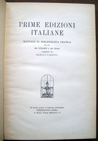 Prime edizioni italiane. Manuale di bibliografia pratica ad uso dei bibliofili e dei librai