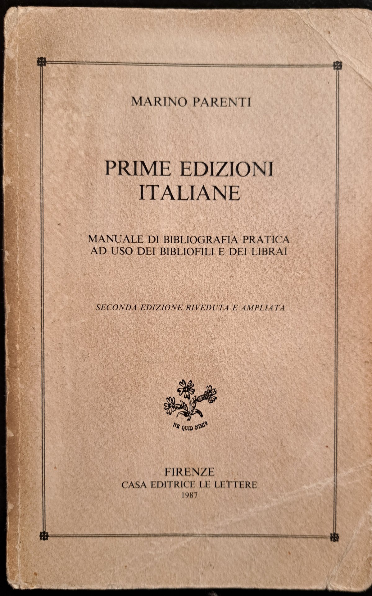 PRIME EDIZIONI ITALIANE. MANUALE DI BIBLIOGRAFIA PRATICA AD USO DEI BIBLIOFILI E DEI LBRAI.