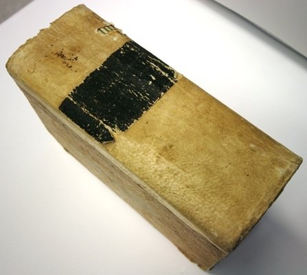 rilegato in mezza pelle, cm 13x18, copertina un pò segnata dai 170 anni di vita, interno perfetto di 1190 pagine
