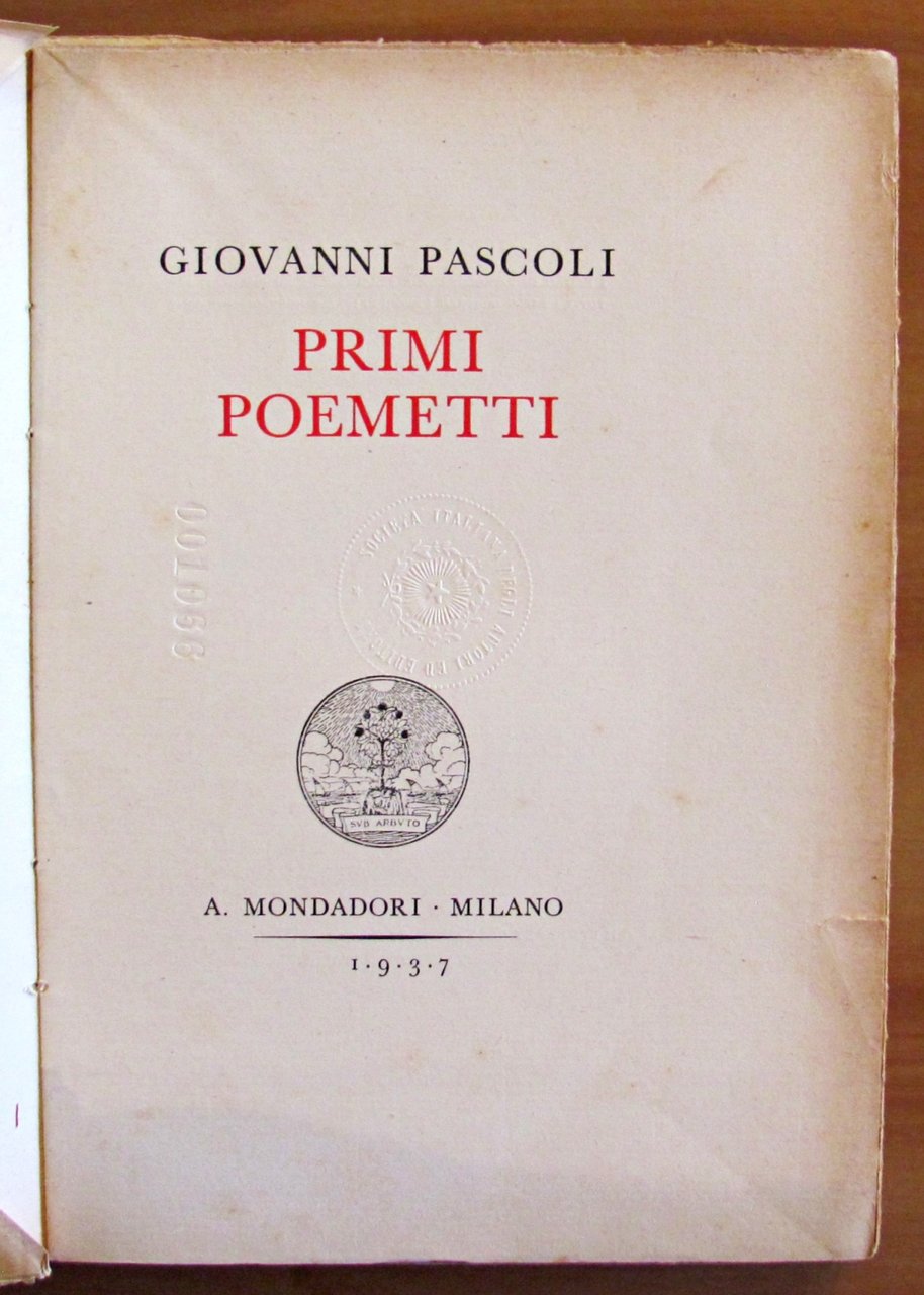 Ed. Mondadori - Milano, 1937. Brossura editoriale con sovraccoperta acetata originale e titoli al piatto e al dorso. Minime fioriture alle sole copertine. 16,5x23,5; pp.196. OTTIMO STATO , Ottimo (Fine)