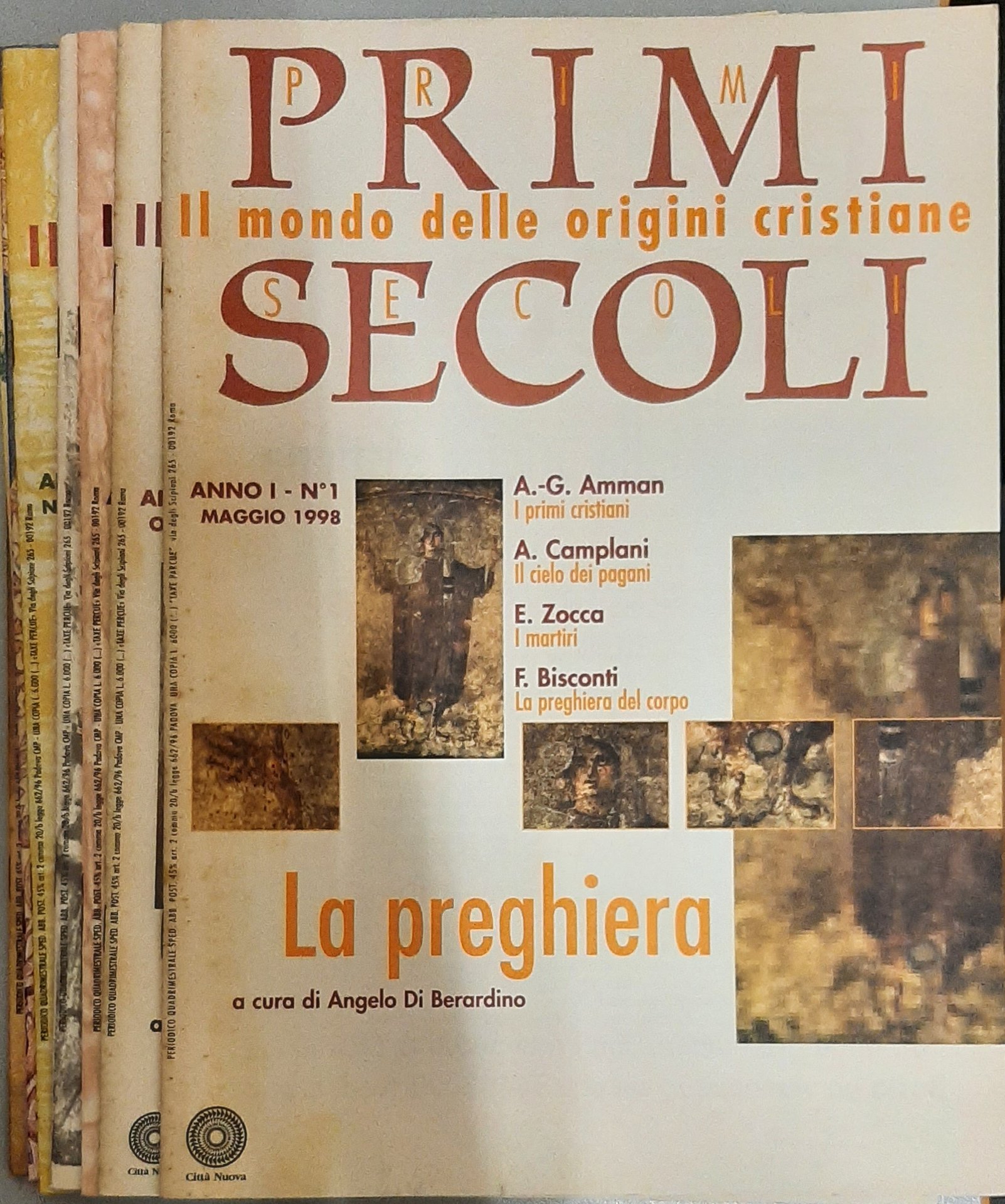 L'opera è composta dai seguenti titoli:1. Preghiera 2. Viaggio nelle catacombe 3.Pasqua 4.Bibbia e Padri 5.Egitto cristiano 6.Croce 7.Pellegrinaggio 8.Chiesa di Roma 9.Armenia cristiana 10.Bibbia e Padri/2 11.Agostino d'Ippona 12.Arte cristiana antica 13.Giudeocristianesimo 14.Origini monachesimo 15.Predicazione. Alcuni volumi risultano come nuovi, uno presenta un piccolo strappetto in quarta di copertina, alcuni presentano ingiallimento ed alcune fioriture.