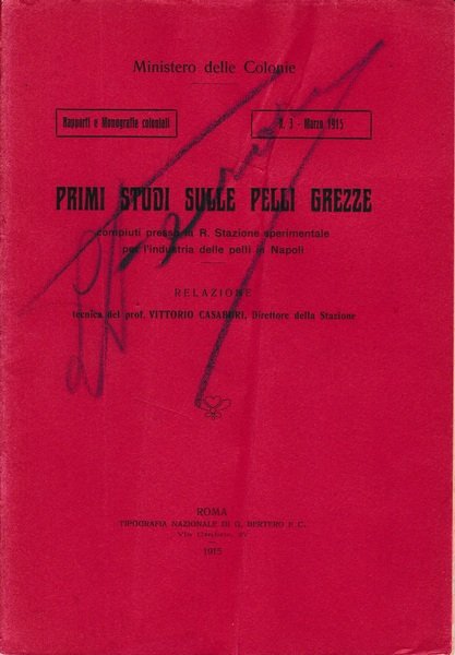 Primi studi sulle pelli grezze compiuti presso la R. Stazione sperimentale per l'industria delle pelli in Napoli n.3 - Marzo 1915