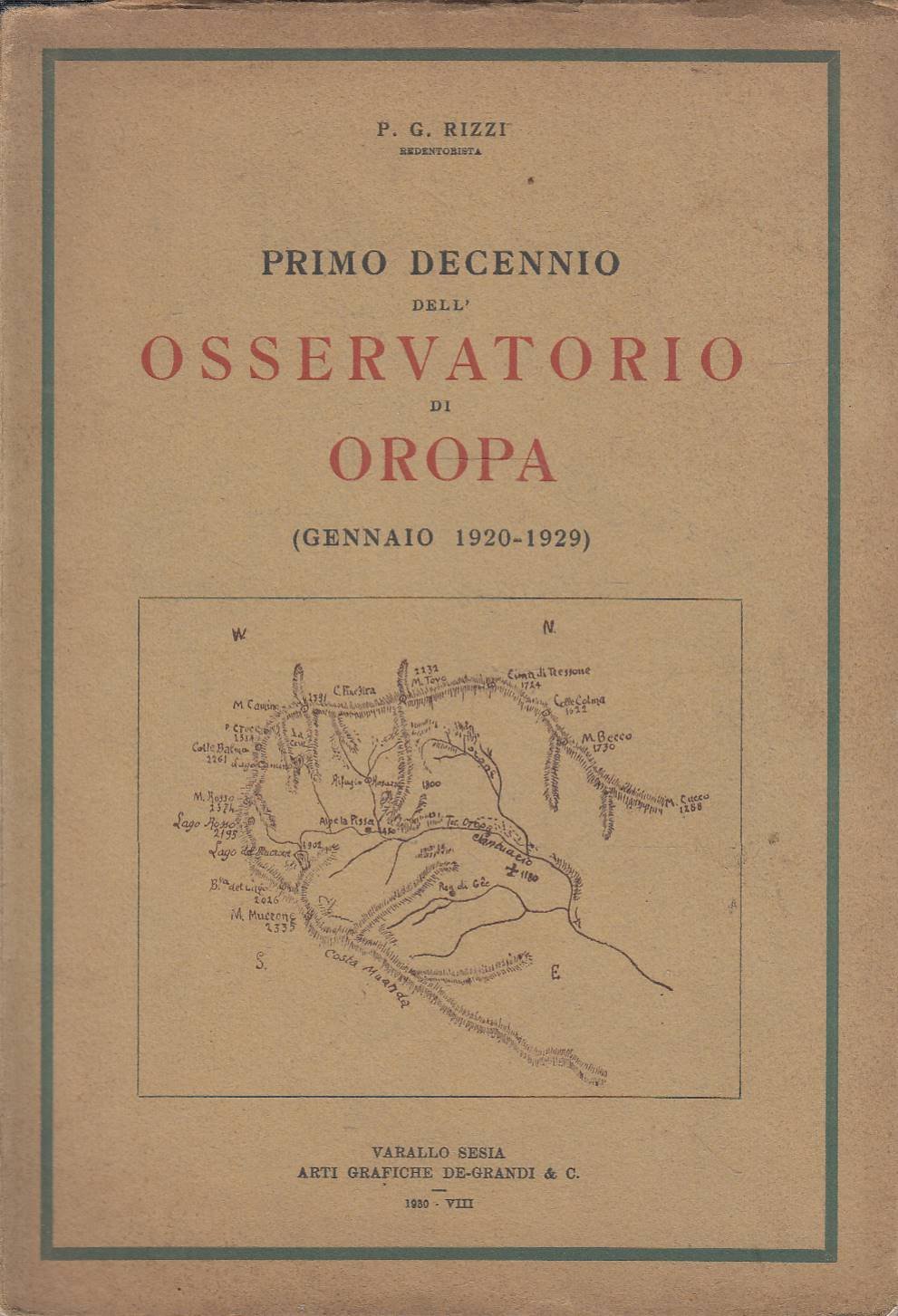 Primo decennio dell'osservatorio di Oropa ( gennaio 1920-1929)