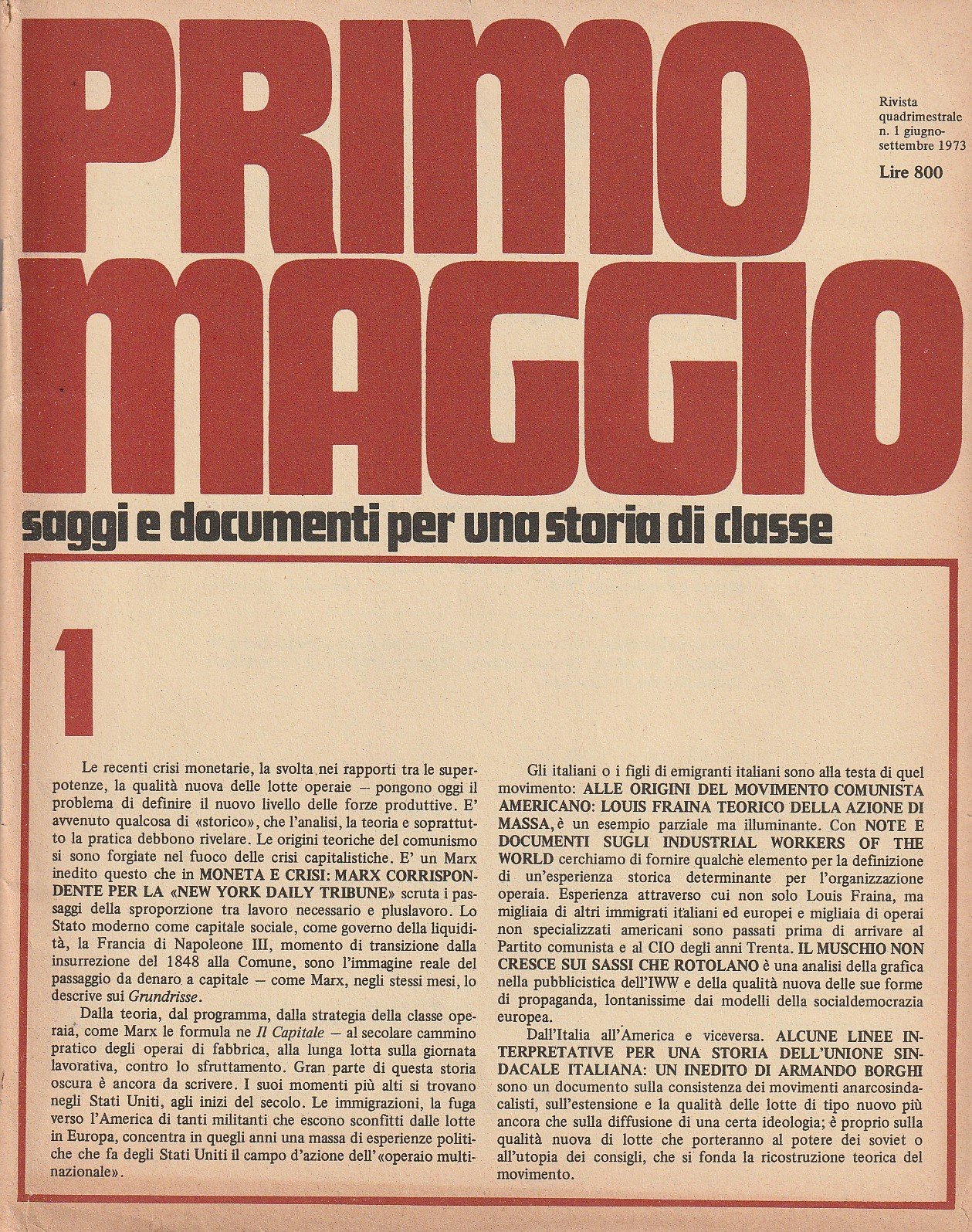 Primo maggio. Rivista quadrimestrale. N. 1. maggio 1973