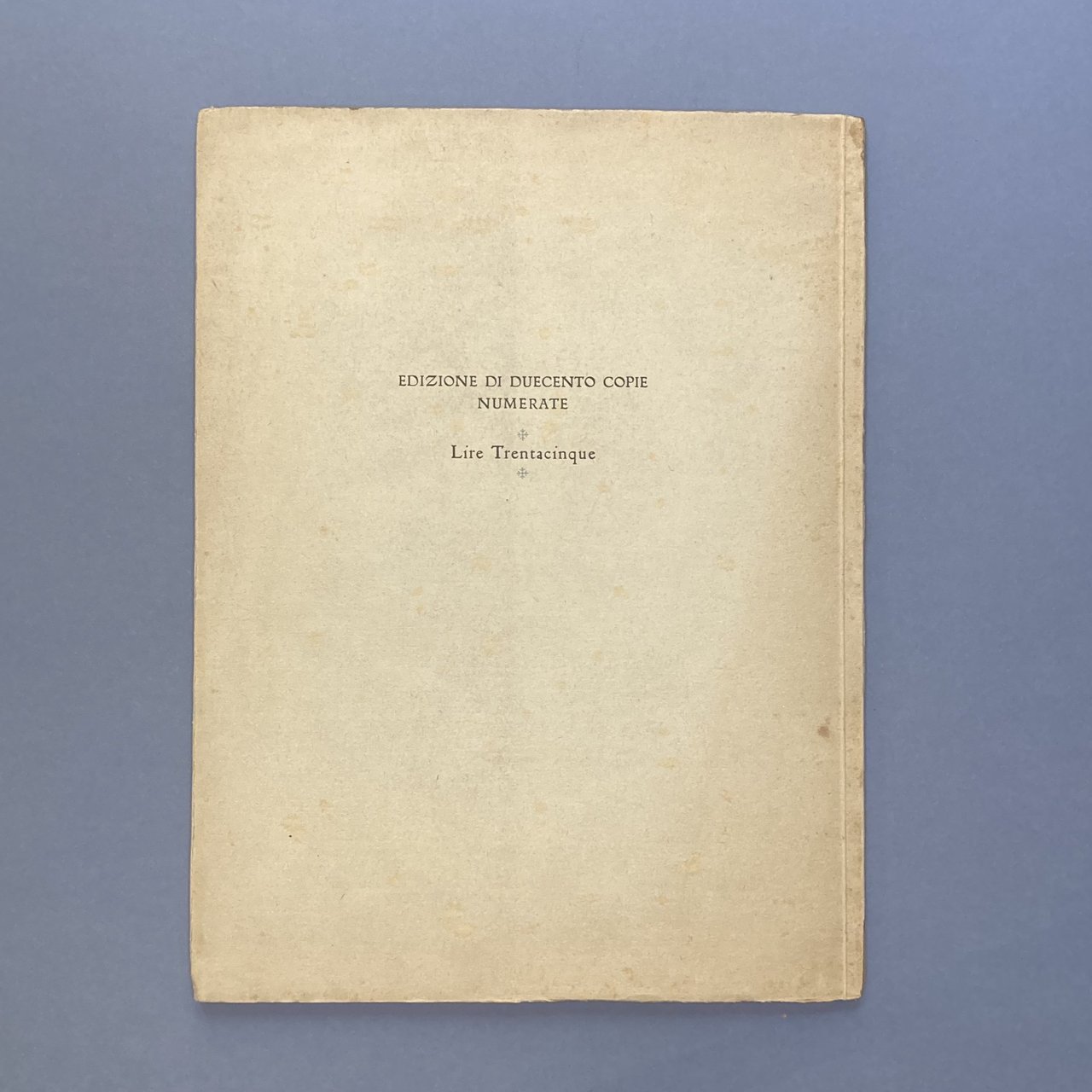 In folio, cm 32, pp. 29, con dieci tavole fuori testo. Brossura editoriale con illustrazione applicata al piatto. Edizione di duecento copie numerate, questa n. 178. Secondo numero della serie: Gli artisti italiani del libro. Eccellente. esemplare.. *** TUTTI I NOSTRI LIBRI SONO VISIBILI PREVIO CONTATTO MAIL O TELEFONO NELLA NUOVA SEDE DI MILANO: LIBRERIA COSMOPOLIS, VIA JOMMELLI, 22. ***