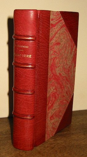 16mo (cm. 16,5), 262 pp. (le ultime pagine mal numerate), 1 c.nn. Legatura in mz. marocchino bordeaux con angoli. Nervi, fili e titolo impresso in oro al ds. Ottimo esemplare. Edizione di 500 esemplari, come risulta da una lettera che il padre del poeta scrisse a Filippo De Titta: ‘Ti autorizzo a far eseguire dal Sig. Carabba 500 copie per 500 lire’. De Medici, 4; Guabello, 3; Vecchioni, 2a.