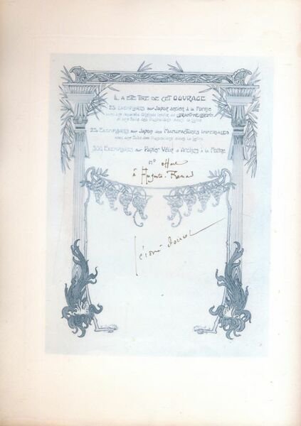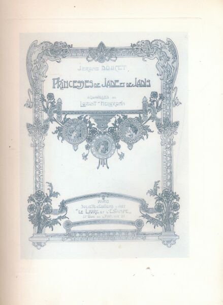 Le livre et l'estampe 1903 Paris, Société d'éditions d'art le livre et l'estampe, sans date - 1903. In-4 relié demi-chagrin bleu nuit à coins. Dos lisse orné à motifs et titre doré. Double filet doré sur les plats. Edition originale de ces trois contes qui ont pour cadres, le Japon, l'Egypte et l'Inde. Edition illustrée par V Lorant-Heilbronn de compositions, dont 5 hors-texte, monochromes et gravées en taille-douce en plusieurs tons de couleurs. Tirage à 350 exemplaires numérotés, celui-ci 1 des 300 exemplaires sur vélin d'Arches à la forme. exemplaire offert par Jérome Doucet et signé. Bel exemplaire