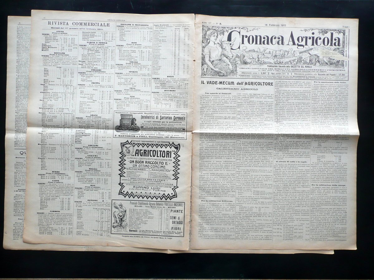 Rivista, I principali stabilimenti piemontesi per la fabbricazione dei concimi chimici" in "Cronaca Agricola" Pubblicazione bimensile della Gazzetta del Popolo Organo ufficiale del Sindacato Agricolo Cooperativo Piemontese Anno XV - Numero 3 Torino - 16 Febbraio 1910 Torino 1910, cm 45,5x32, da pagina 17 a pagina 24, con qualche ill. in b/n nel t. (esemplare autonomo con numerazione progressiva); esemplare a fogli sciolti; parte sup. della prima pagina con traccia di vecchia etichetta per spedizione postale. Numero completo. Condizioni di conservazione Esemplare in buone condizioni con tracce d'uso, leggere pieghe di conservazione, normali minimi accenni d'ingiallimento del tempo dovuti all'età e al tipo di carta; dorso con due strappetti di vari cm e alcune leggere tracce di precedente inserimento dell'esemplare entro volume (vedi foto). Due pagine dedicate ai principali stabilimenti piemontesi per la fabbricazione dei concimi chimici, con sei illustrazioni fotografiche in bianco e nero che raffigurano lo stabilimento di Bra, di Casale Monferrato, di Cuneo e qualche fase di lavorazione (vedi foto). Numero completo. SC03.D10702 N "