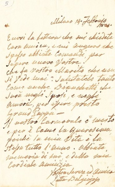 lettera manoscritta e firmata della Principessa Belgioioso Litta di una facciata datata Milano, 14 febbraio 1828; ottimo es.
