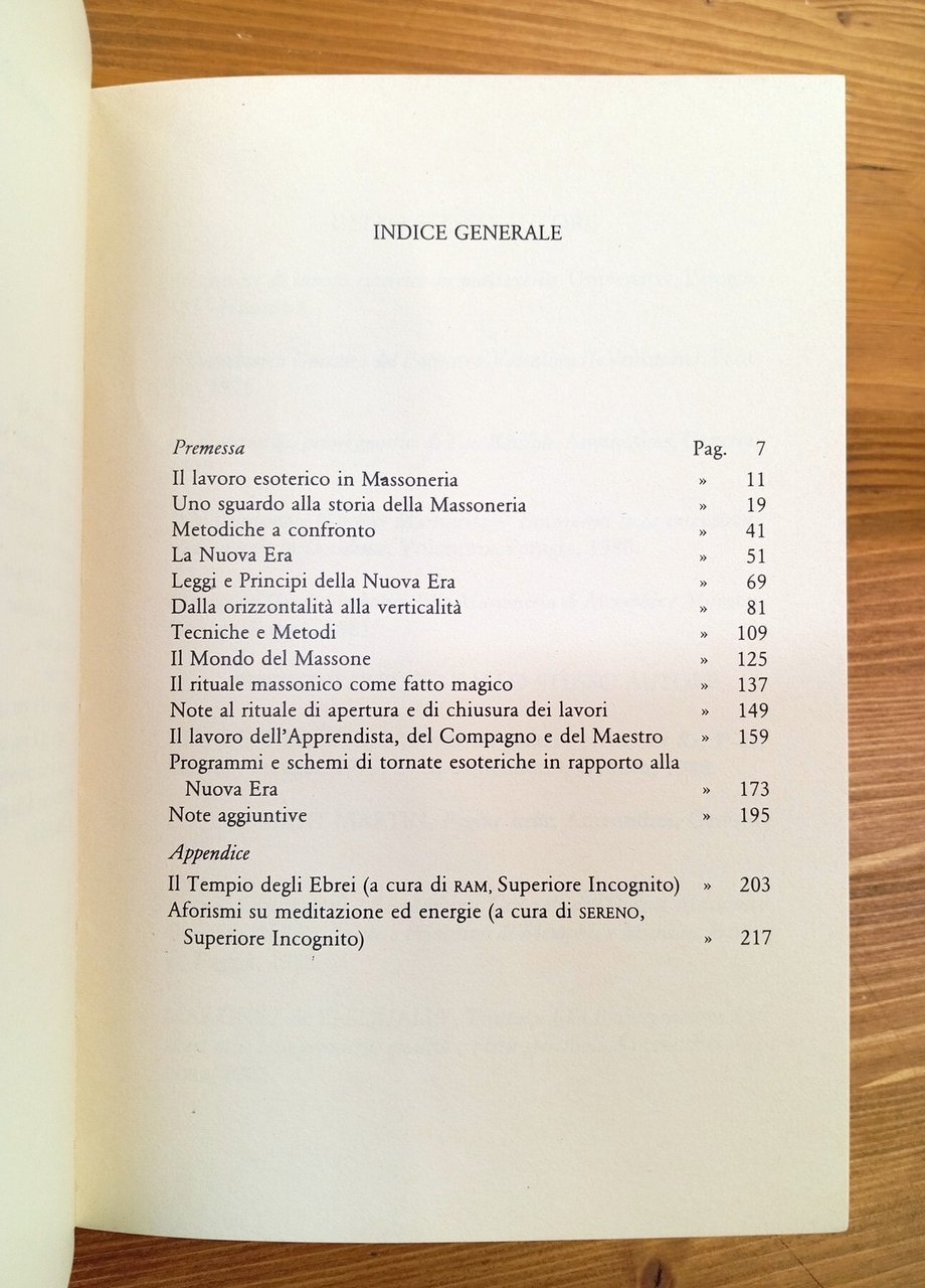 Prima edizione. Collana "Altair", 13 - Brossura editoriale di 227 pagine con alcune illustrazioni in nero. Indice generale consultabile nelle nostre immagini. Lievi segni d'uso e del tempo alla copertina, nel complesso ottima copia -- Con quest'opera l'autore si propone di offrire agli aspiranti iniziati più giovani, una guida operativa che consenta di migliorare beneficamente l'approccio alla prassi dei lavori in Loggia. Esponendo tecniche e metodiche, indirizzando sui sostanziali connotati della Nuova Era, premendo il tasto sul rinnovamento etico e spirituale, Brunelli intende rivolgersi direttamente alle nuove e numerose generazioni di Massoni, con l'occhio sempre attento a mettere in rilievo le fonti e lo spirito originario della ricerca, malgrado l'incalzare esagitante di mode tanto affascinanti quanto epidermiche.