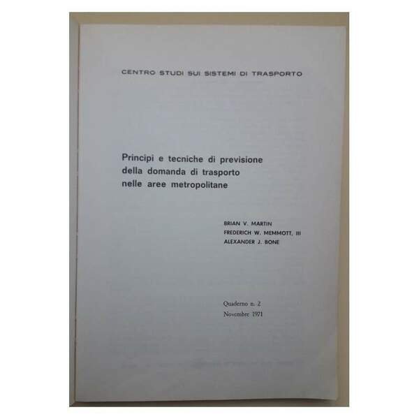 PRINCIPI E TECNICHE DI PREVISIONE PER LA DOMANDA FUTURA DI TRASPORTO URBANO(1971)