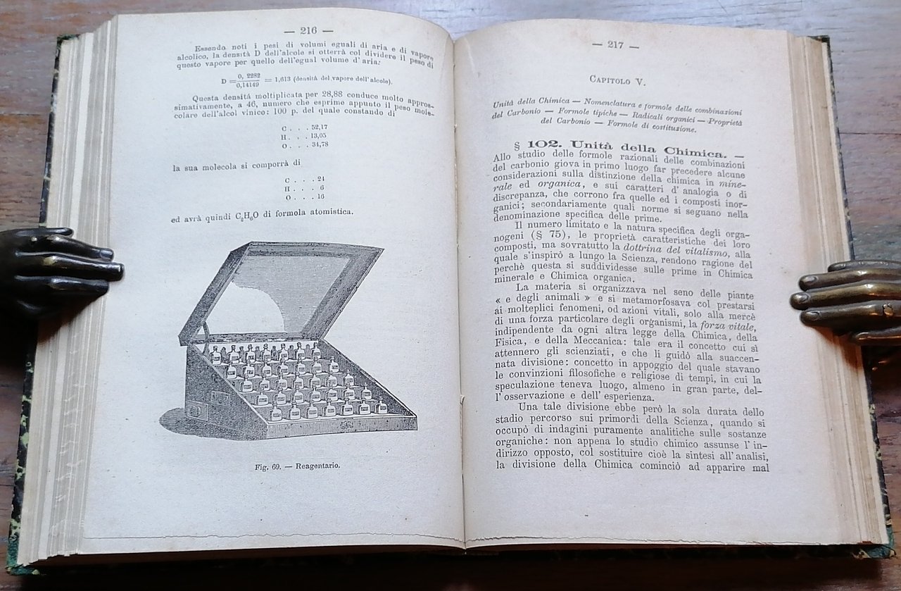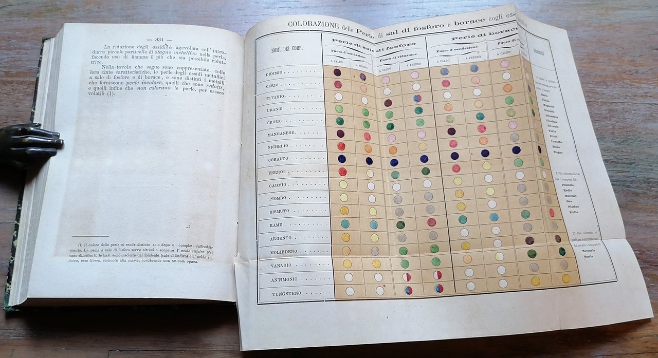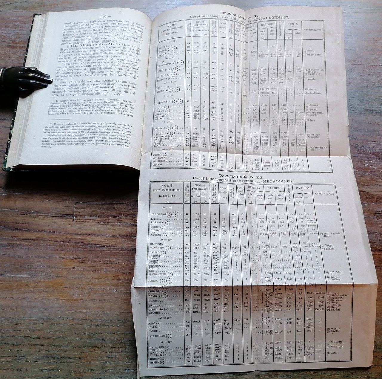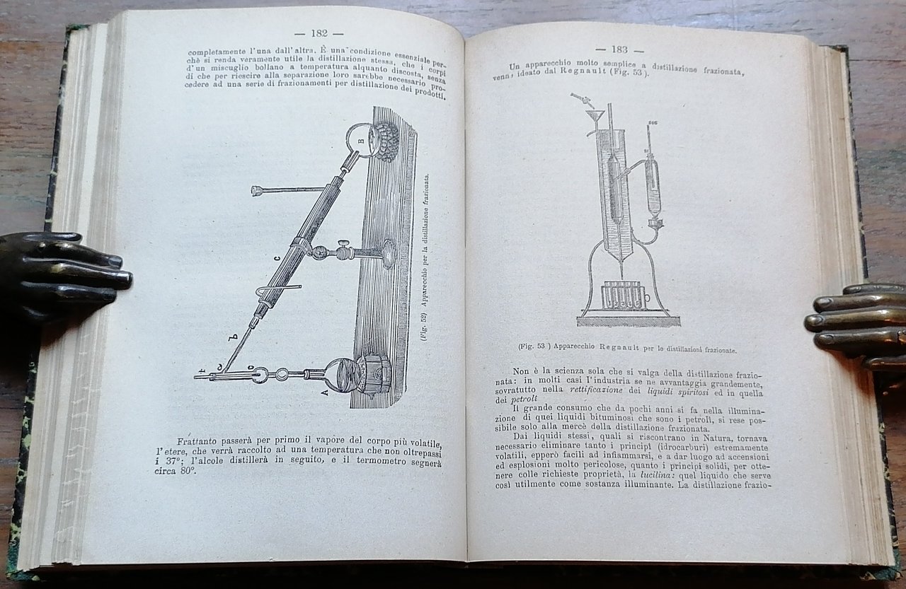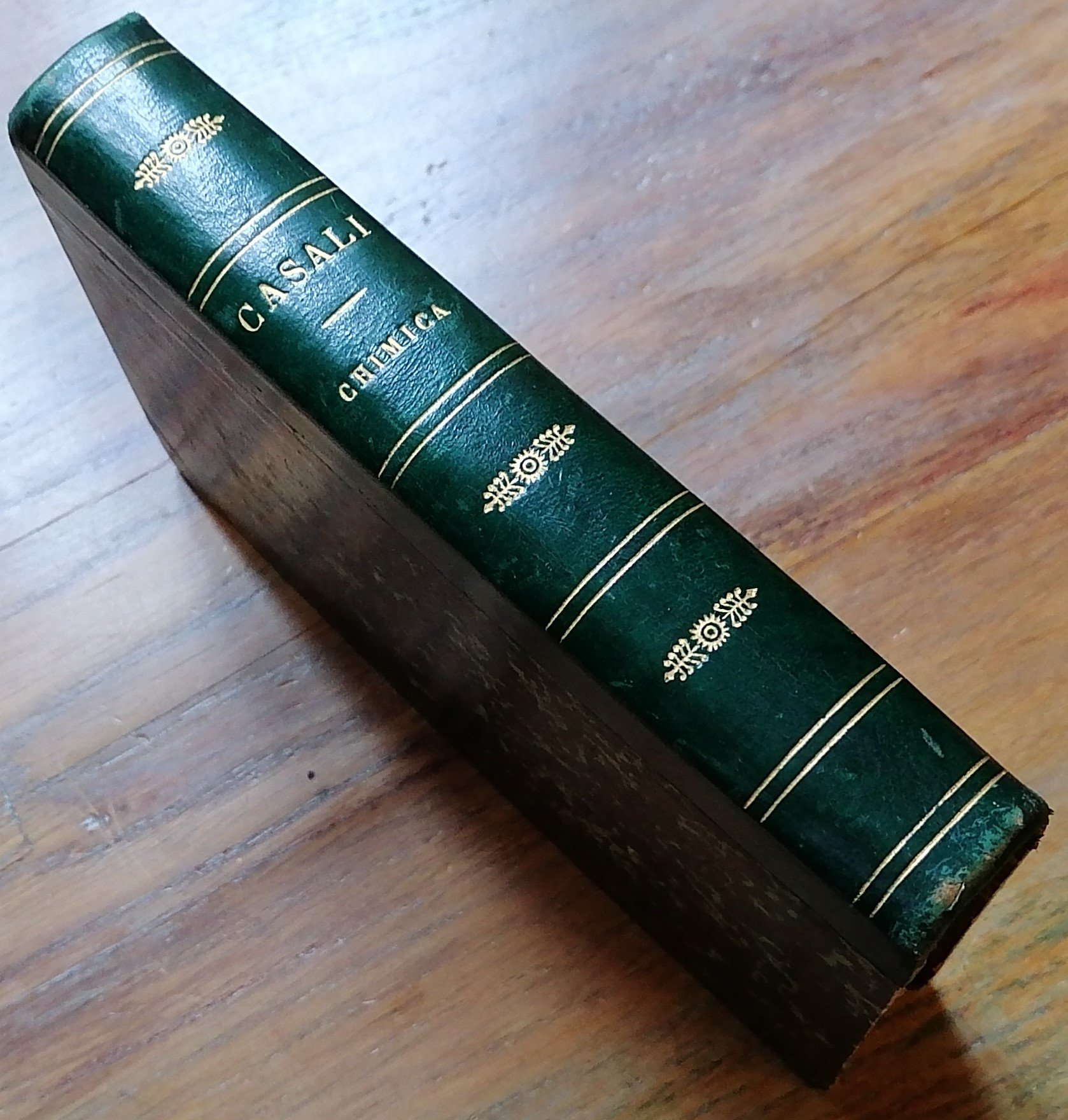 In 16° grande (cm 19 x 13), legatura coeva in mezza pelle con titoli ed impressioni in oro al dorso, pp. (8),414,(2), con 98 figure nel testo, due tavole a colori ripiegate, alcune tabelle di cui due fuori testo ripiegate. Ottimo stato di conservazione.