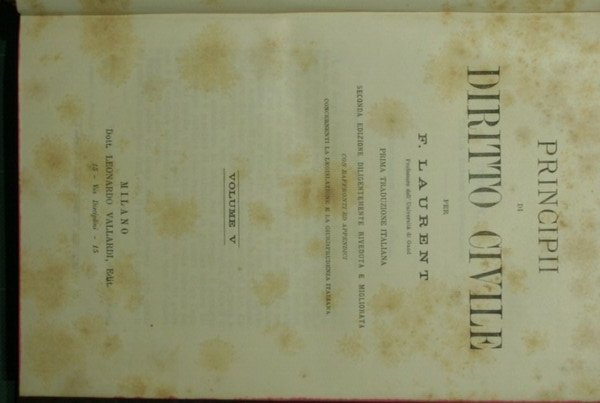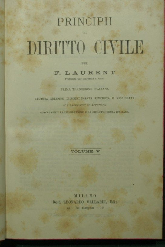 Prima traduzione italiana. Seconda edizione diligentemente riveduta e migliorata con raffronti ed appendici concernenti la legislazione e la giurisprudenza italiana - in 8° - pp.597 - Mezza pelle con titolo e fregi in oro al dorso nervato - Tagli rossi - Lievi fioriture in alcune pagine