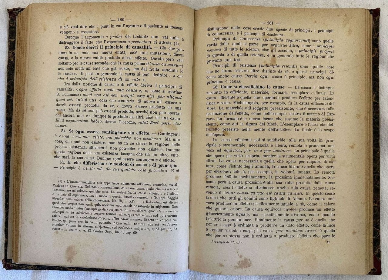 Edizione del 1896 di questa opera di filosofia ad uso dei licei scritta dal Professore Giovanni Rossignoli. L'opera è composta da due volumi ed è completa. Il primo volume di logica e metafisica, il secondo volume di estetica, etica e storia della filosofia. Appendice dedicata all'evoluzionismo. In buone condizioni e completo. Copertina in mezza pelle coeva in buone condizioni con lievi usure ai margini e dorso. Legatura in buone condizioni. Pagine in buone condizioni con fioriture. In 8. Dim. 24x17 cm. Pp. 453, 480.Edition of 1896 of this work of phylosohpy for the usage of high school written by Giovanni Rossignoli. The work is made up of two volumes and it is complete. The first volume of logics and metaphysics, the second volume of aestetics, ethic and history of phylosophy. Appendix dedicated to evolutionism. In good conditions and complete. Half leather coeval cover in good conditions lightly worn in the extremities. Binding in good conditions. Pages in good conditions with foxing. In 8. Dim. 24x17 cm. Pp. 453, 480.