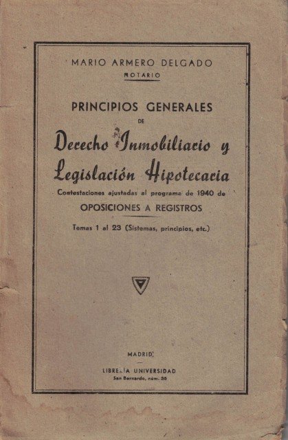 Principios generales de derecho inmobiliario y legislación hipotecaria. Contestaciones ajustadas al programa de 1940 de oposiciones a Registros. Temas 1 al 23 (Sistemas, principios, etc)