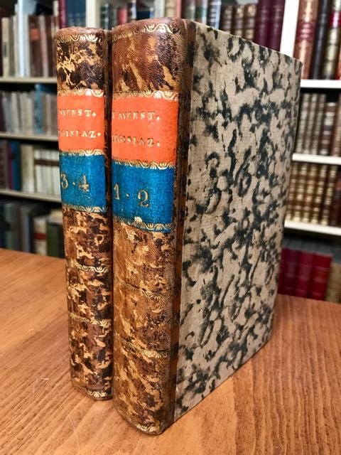 <span style="font-style: normal;">4 volumi in 2 tomi in-8° (cm. 19), gradevolissime legature coeve in m. pelle maculata con titolo su tasselli ai dorsi e piatti marmorizzati, tagli spruzzati; carte in ottimo stato; dedicatoria dell'editore a Melchiorre Delfico di San Marino; sporadiche fioriture. Traduzione italiana dei </span><i>Principes</i> (Amsterdam 1776) stilati dall'economista e giurista elvetico, tentativo dottrinale di riaffermare la legge naturale ed affrancare la società dall'assolutismo dispotico. Non comune. Cfr. Venturi, <i>Illuministi italiani. Riformatori napoletani</i>, p. 615. Ottimo esemplare. (NJ2)