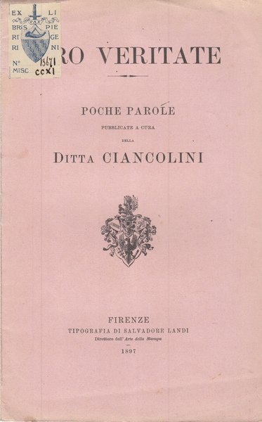 Pro Veritate Poche Parole Pubblicate A Cura Della Ditta Ciancolini