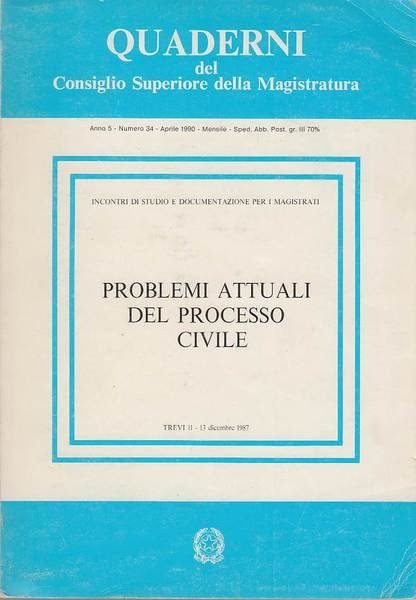 In-8 (Cm 24 x 17), pp. 509, brossura editoriale. Collana Quaderni del consiglio superiore della magistratura, anno 5, numero 34. Aprile 1990. MOLTO BUONO