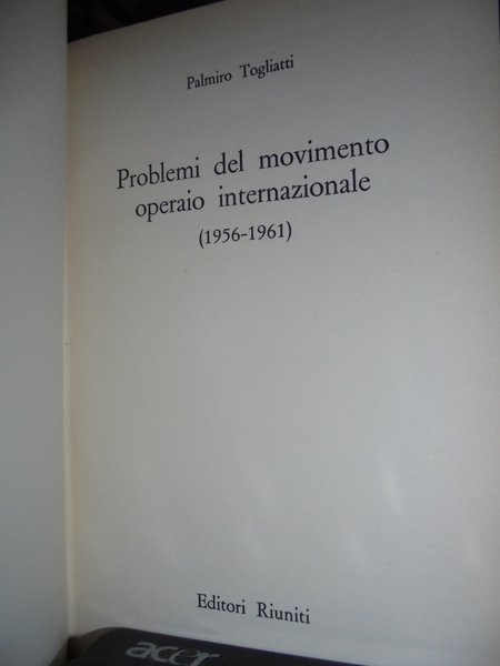 Palmiro, Togliatti. Roma, Editori Riuniti, 1962. Problemi del movimento operaio internazionale 1956 - 1961. In-8°, cartonato edit. 410 pp. Ben conservato. Uff. pacco F. carc.