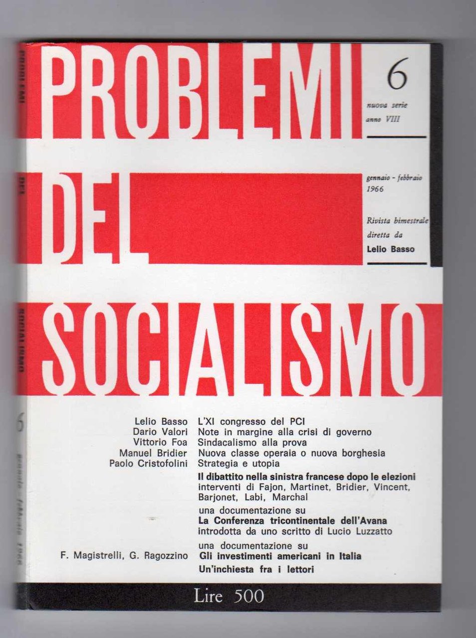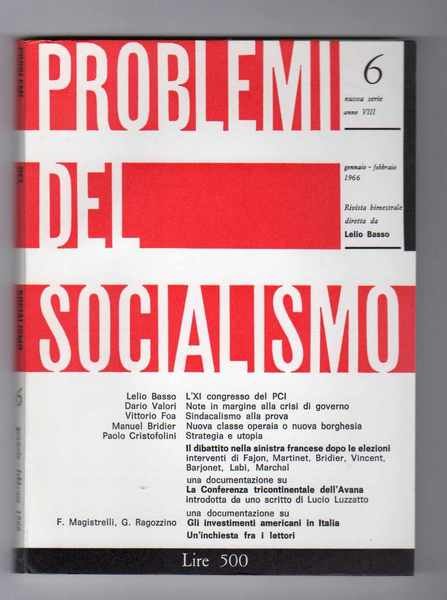 Problemi del socialismo Rivista diretta da Lelio Basso - Annata 1966 completa di tutti i 7 fascicoli