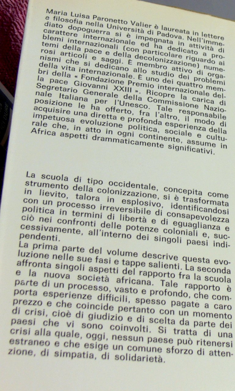 La scuola di tipo occidentale, concepita come strumento della colonizzazione, si è trasformata in lievito, talora in esplosivo, identificandosi con un processo irreversibile di consapevolezza politica in termini di libertà e di eguaglianza e ciò nei confronti delle potenze coloniali e, successivamente, all'interno dei singoli paesi indipendenti.