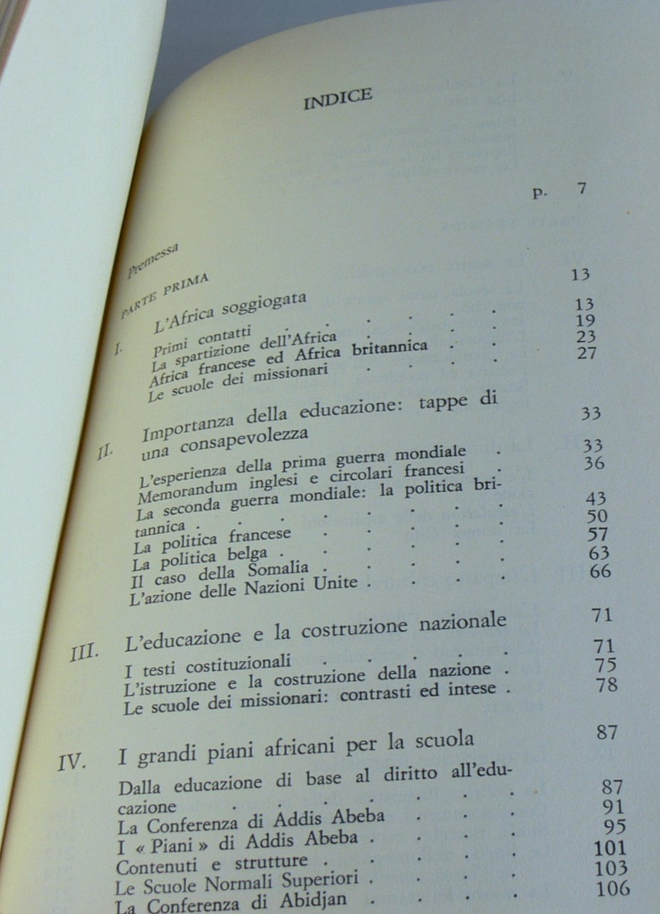 Soggetti: Africa, Aspetti culturali, Scuola, Educazione, Pedagogia, Sociologia, Cultura africana, Scuole, Formazione, Saggi, Colonialismo, Colonizzazione, Occidente, Influenza culturale, Nazioni Unite, Somalia, Politica inglese, francese, belga, Impero britannico, Francia, Belgio, Conferenze, Addis Abbeba, Esodo rurale, Società, élite, Pensiero scientifico, Ambiente, Alienazione, Negritudine, Apartheid, Razzismo, Bianchi, Neri, Linguistica, Letteratura, Ricerche, Studi, Storia, Alfabetizzazione, Evoluzione, Didattica, L'éducation en Afrique Noir, Scuola, Libri vintage, Rari, Nera, Istruzione, Vygotskij, Etnie, Afrique Noire, Psicologia culturale, Psychology, Journal des Africanistes, Kpelle, NGAKOUTOU, Bambara, Africa, Cultural Aspects, School, Education, Pedagogy, Sociology, African Culture, Schools, Education, Essays, Colonialism, Colonization, West, Cultural Influence, United Nations, Somalia, English Politics, French, Belgian, British Empire, France, Belgium, Conferences, Rural Exodus, Society, élite, Scientific Thinking, Environment, Alienation, Negritude, Apartheid, Racism, Whites, Blacks, Linguistics, Literature, Research, Studies, History, Literacy, Evolution, Didactics, School, Rare, Rare Books, Education Collezionismo Critica Critics Bambini africani Apprendimento metodi educativi Tecnologia Divario Emigrazione Collecting Criticism Critics African children Learning educational methods Technology Gap Emigration