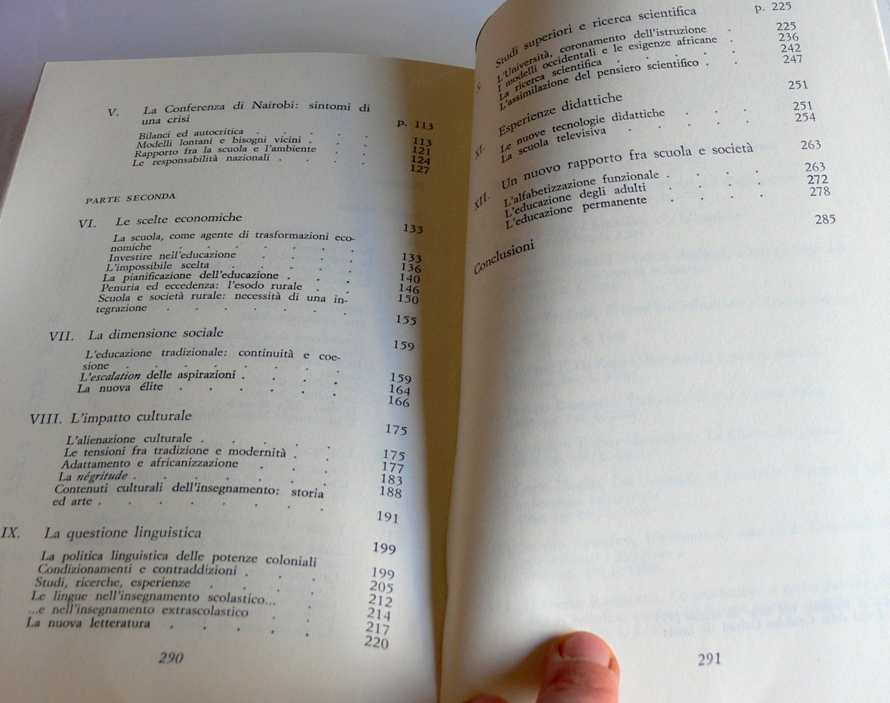 La seconda affronta singoli aspetti del rapporto fra la scuola e la nuova società africana. Tale rapporto è parte di un processo, vasto e profondo, che comporta esperienze difficili, spesso pagate a caro prezzo e che coincide pertanto con un momento di crisi, cioè di giudizio e di scelta da parte dei paesi che vi sono coinvolti. Si tratta di una crisi alla quale, oggi, nessun paese può ritenersi estraneo e che esige un comune sforzo di attenzione, di simpatia, di solidarietà.