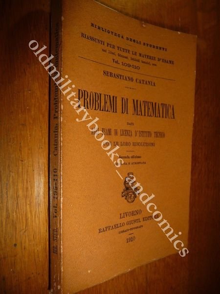 TITOLO: PROBLEMI DI MATEMATICA DATI AGLI ESAMI DI LICENZA D'ISTITUTO TECNICO CON LE LORO RISOLUZIONI DESCRIZIONE: Raffaello Giusti Editore Livorno 1910 pp. 145 in 16°. CONDIZIONI: Buone/Ottime. PESO / WEIGHT: 120 gr. without package