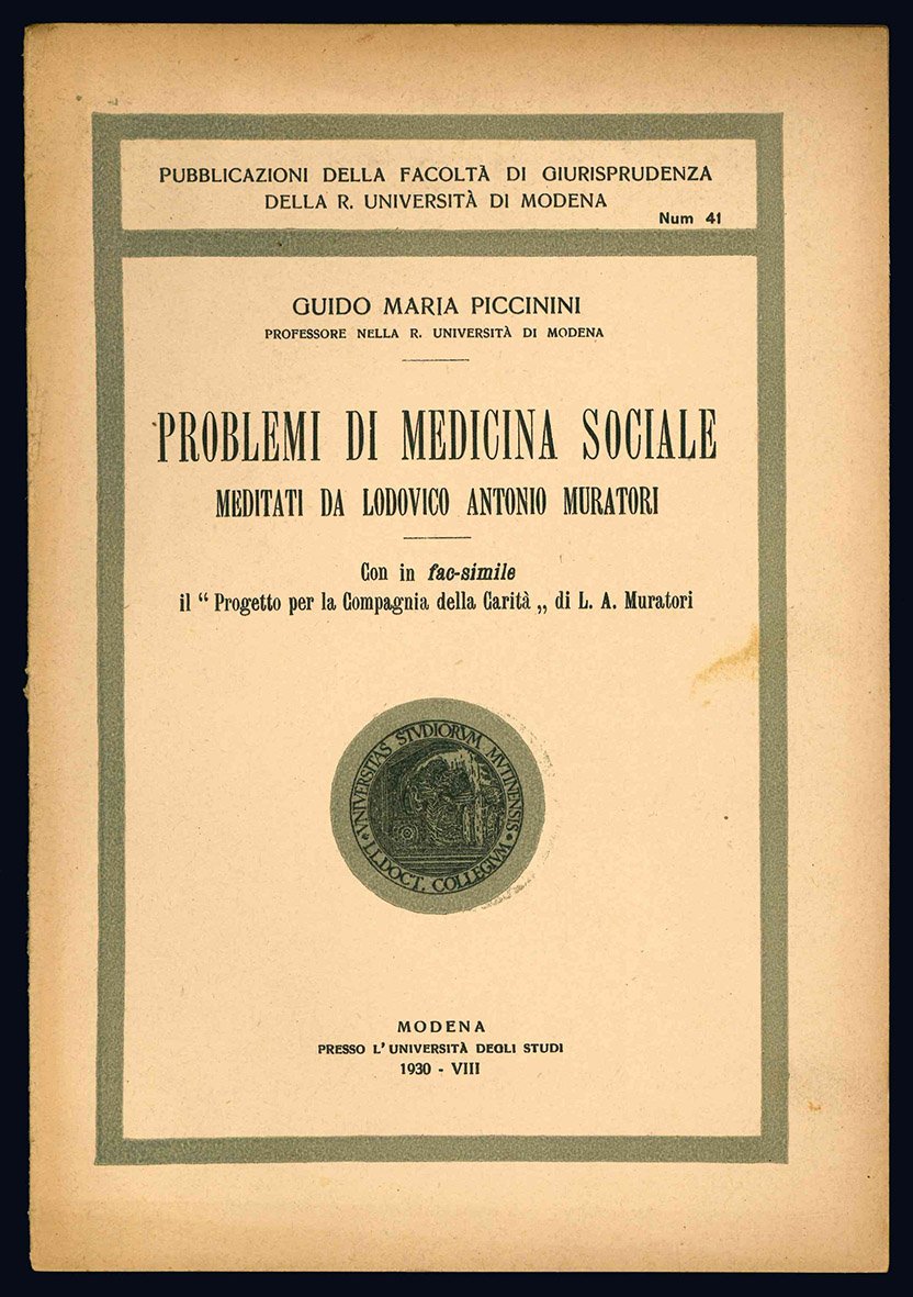 Problemi di medicina sociale meditati da Lodovico Antonio Muratori. Con in fac-simile il "Progetto per la Compagnia della carità" di L.A. Muratori.
