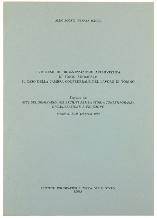 PROBLEMI DI ORGANIZZAZIONE ARCHIVISTICA DI FONDI SINDACALI: il caso della Camera Confederale del Lavoro di Torino.