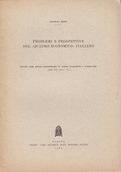In-8 (Cm 24,2 x 17), pp. 21, brossura edioriale. Estratto dalla rivista internazionale di scienze coomerciali. MOLTO BUONO