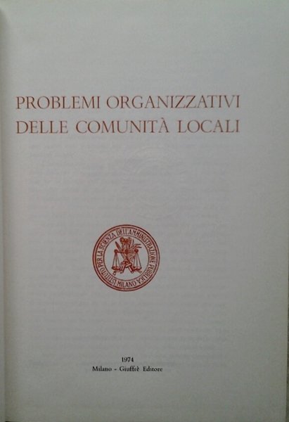 PROBLEMI ORGANIZZATIVI DELLE COMUNITA' LOCALI.