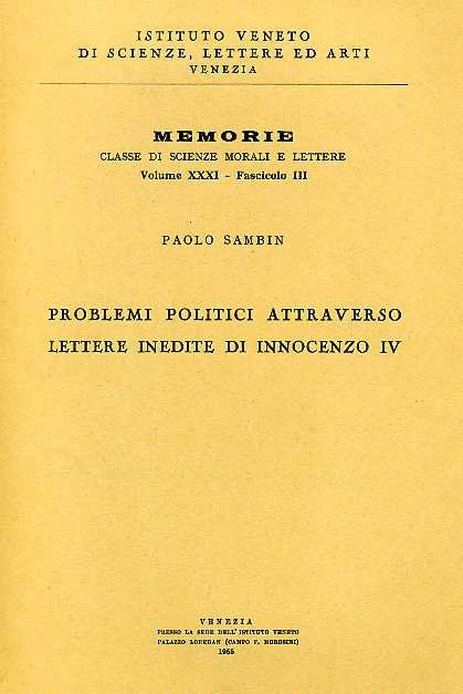 Problemi politici attraverso lettere inedite di Innocenzo IV.